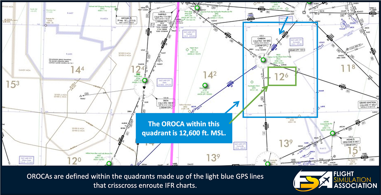 If you're flying without human ATC, you can still use the instrument charts to safely route direct OMUCE. All IFR charts include an OROCA, or Off-Route Obstruction Clearance Altitude. This provides at least 1,000 ft. of buffer from terrain (in areas like this one with mountainous terrain, the buffer is increased to 2,000 ft.). While the OROCA does not necessarily provide navigation or ATC coverage, it will keep you safe from terrain.